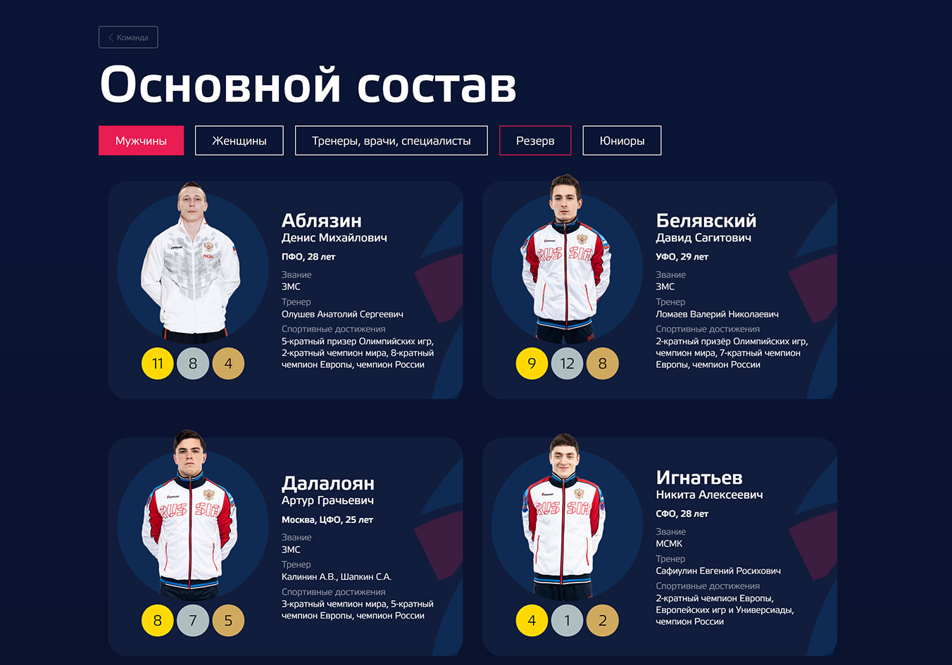 На сайте теперь доступны не только информация об основном составе, но также и юниорском и резервных составах сборной. Также мы переработали варианты отображения самих составов сборной для более быстрого и удобного ознакомления. Помимо этого мы обновили информацию о всех спортсменах сборной и сделали более удобным страницу профайла каждого спортсмена.