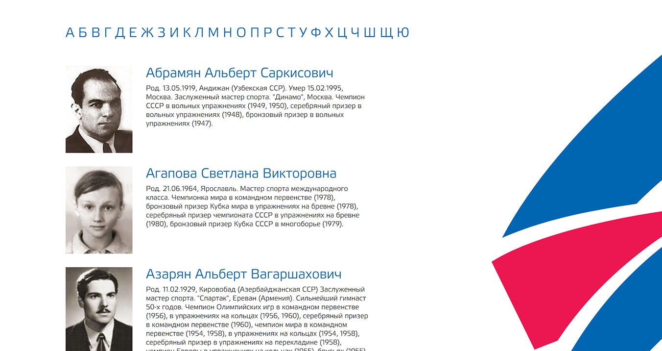 Мы вернули раздел сайта, посвященный чемпионам и легендам спортивной гимнастики в привычном для вас виде.