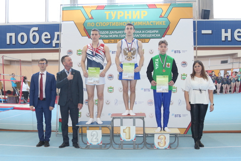 В мужской части командного первенства победа была за спортсменами из Благовещенска, на втором месте – Комсомольск-на-Амуре, на третьем – Южно-Сахалинск. В финальных соревнованиях по многоборью среди мужчин победу одержал Данила Островерхий из Ленинск-Кузнецкого, кстати до окончания школы он жил и занимался гимнастикой в Благовещенске. На втором месте Алексей Геращенко из Хабаровска, на третьем – Устин Макеев из Читы.