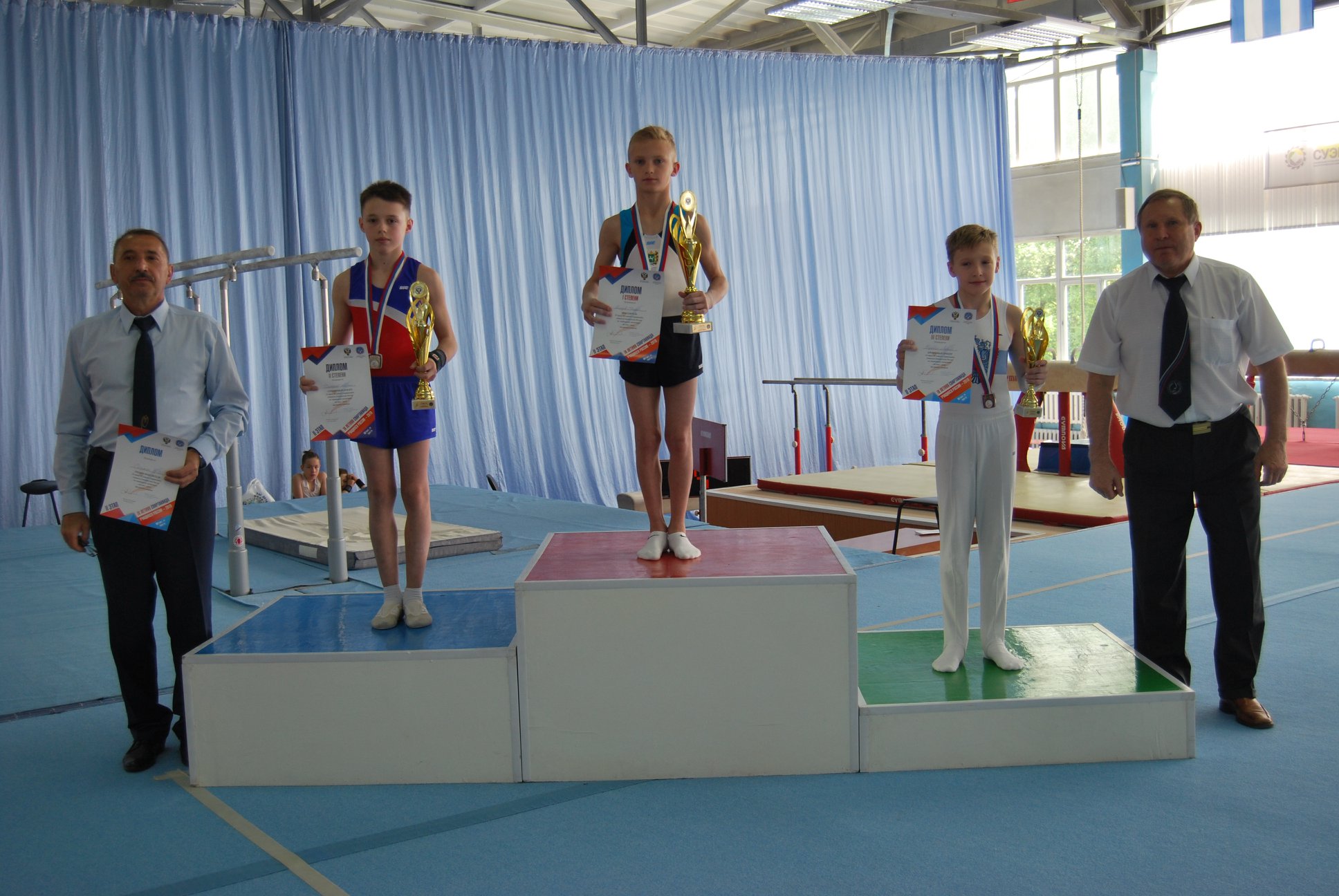 В личном первенстве среди юношей по программе I спортивного разряда победу одержал спортсмен из Томской области Шуплецов Евгений (г.Северск, 2006 г.р., тренер Захаров В.В.), «серебро» и «бронза» у кемеровских гимнастов Тютюнникова Глеба и Шиканова Тимофея соответственно.