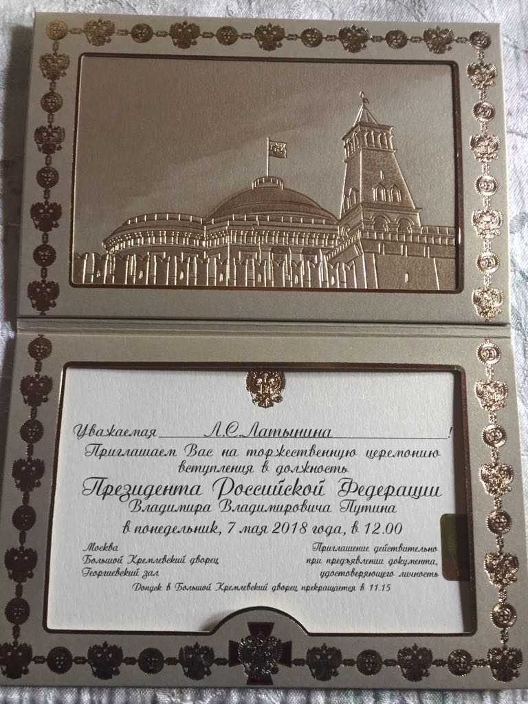 Лариса Семёновна Латынина  приглашена на церемонию вступления в должность президента Российской федерации