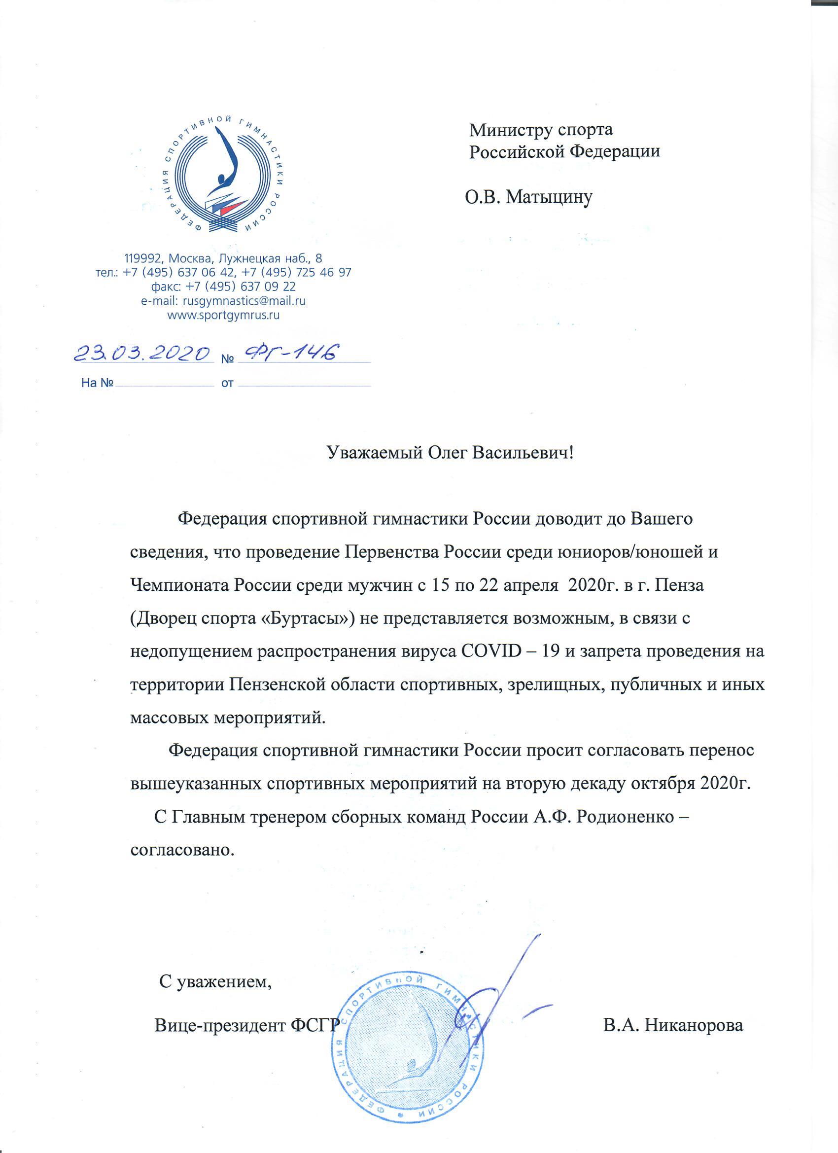 Перенос Чемпионата России среди мужчин и Первенства России среди юниоров 2020