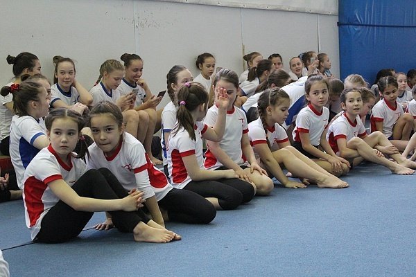 Юные спортсмены задавали знаменитой гимнастке самые каверзные вопросы, на которые она с легкостью отвечала.