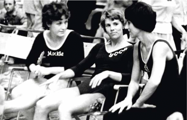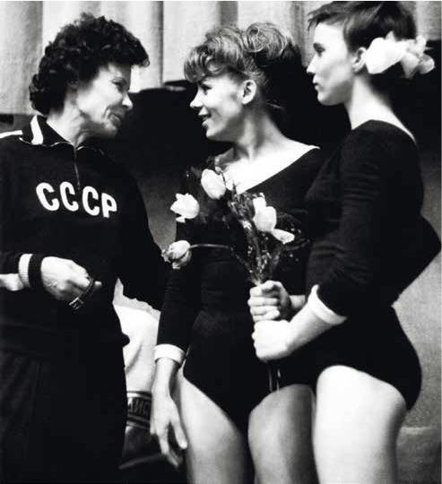 София. Чемпионат Европы. А. Червякова (тренер), Л. Латынина, Л. Петрик. 1965 г.