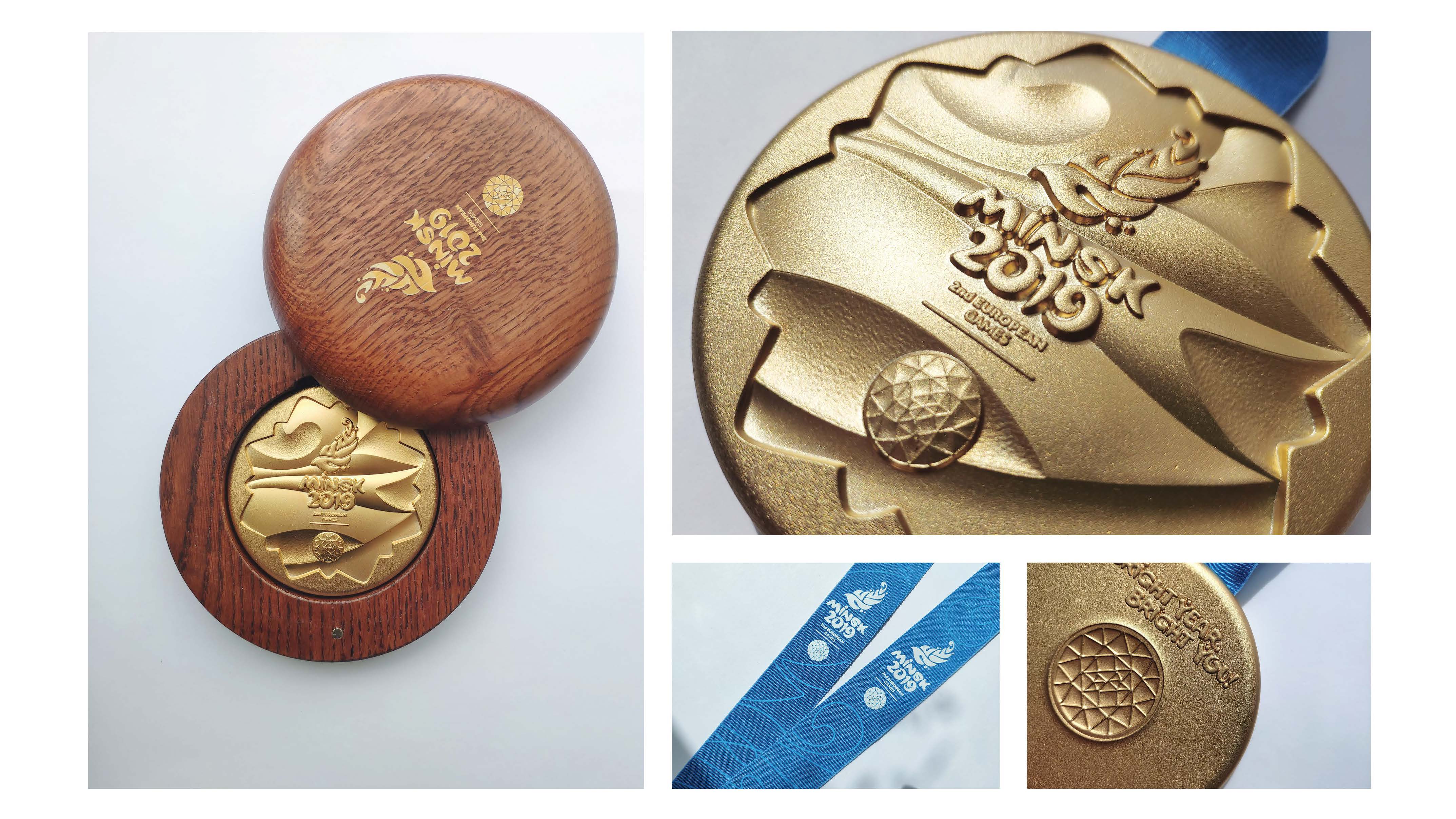 Форма медали – классический круг, внутри которого лучистый элемент с нечеткими очертаниями – именно так выглядит солнце ярким летним днем, напоминая нам о времени проведения Игр. Конец июня – самый жаркий период белорусского лета, когда солнце словно плавится на небосводе. Также подобная «уютная» форма без резких углов олицетворяет черты белорусского народа: мягкость, дружелюбность, добродушие, близость к природе. Неслучайным является и диаметр медали – 9,5 сантиметров, ведь население Беларуси составляет 9,5 миллионов человек. Впечатление домашнего уюта и тепла добавит чехол для медалей, изготовленный из натурального дерева. Это вызывает ассоциацию с традиционными белорусскими ремеслами, белорусской природой и, в частности, с лесами. Здесь, в самом сердце Европы, по легенде, зацветает чудесный цветок – Папараць-кветка, исполняющий мечты.