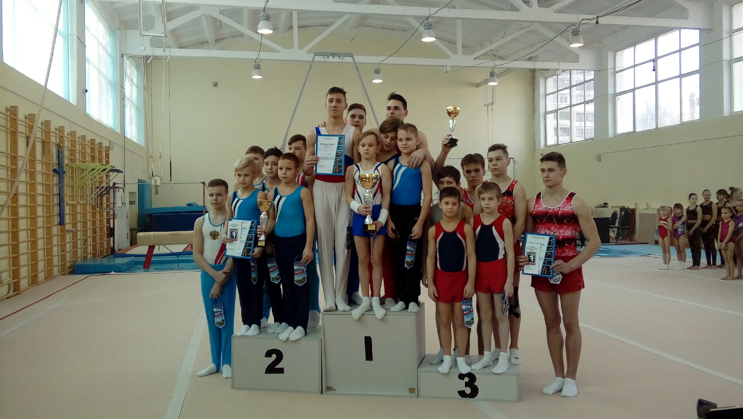 Приглашены на соревнования ветераны спорта, родители. Присутствовали заслуженный работник ФК РФ, экс директорспортивной школы, гимнасты Шаруненко Ю.М. и Чистов Б.В.